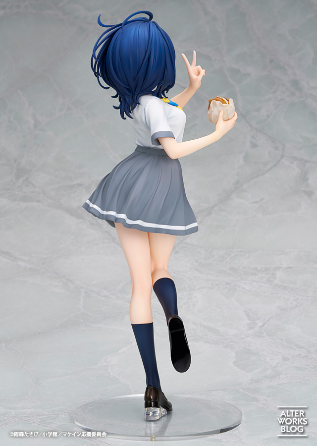 クリっとした瞳や小さく開いた口元など自然体な表情が彼女らしく、跳ねるような髪先まで元気いっぱいな仕上がりです。ひねりのあるポーズと連動したスカートのなびきや、制服のシワ表現などの造形も見所です。