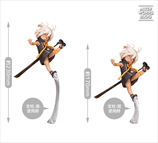 1/7 スケール 全高:約280mm/全幅:約370mm【沖田 総司〔オルタ〕】 全高:約230mm(支柱:長)/約170mm(支柱:短)【煉獄】 |