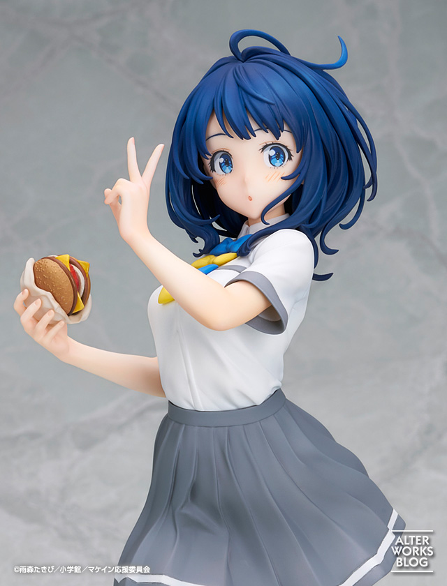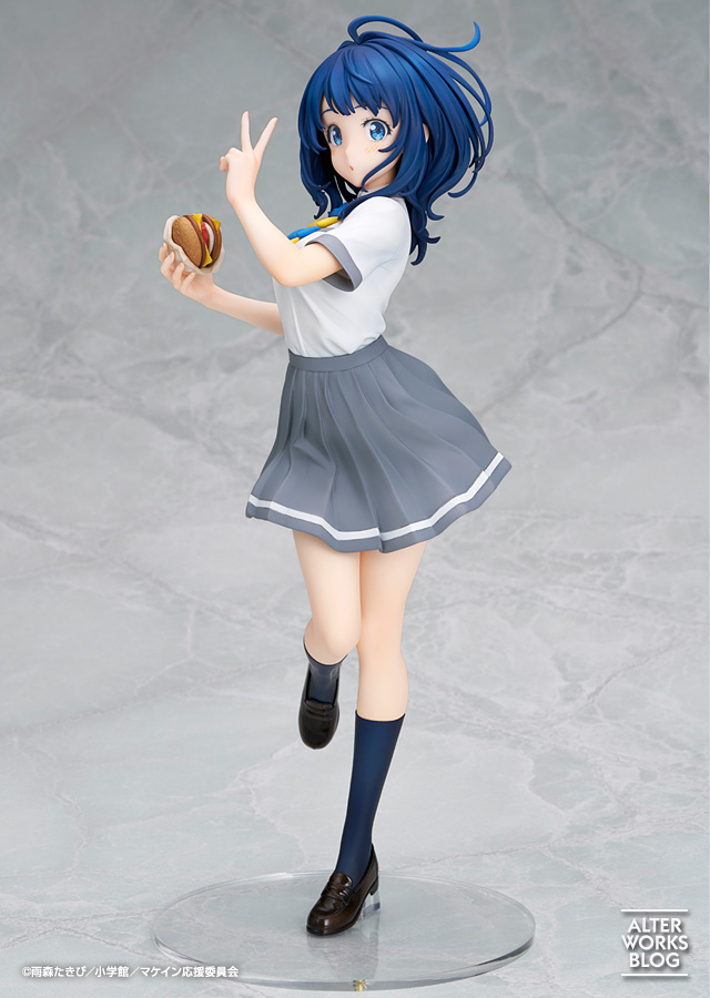 クリっとした瞳や小さく開いた口元など自然体な表情が彼女らしく、跳ねるような髪先まで元気いっぱいな仕上がりです。ひねりのあるポーズと連動したスカートのなびきや、制服のシワ表現などの造形も見所です。